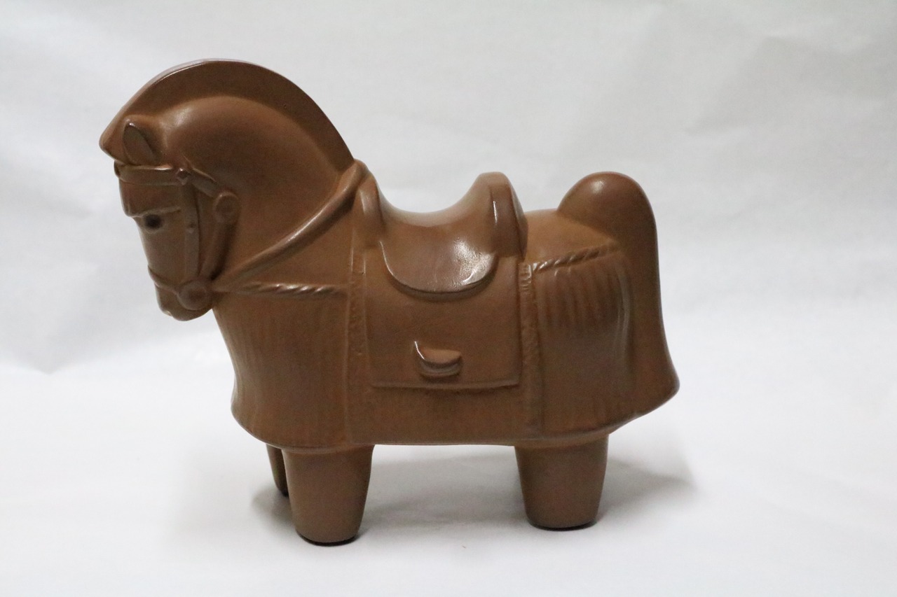 説明:来年の干支である午をモチーフとした人形です。埴輪の様な色合いの馬に仕上がりました。来年も良い一年になるように干支の午が守ってくれますようにと願いを込めて製作致しました。